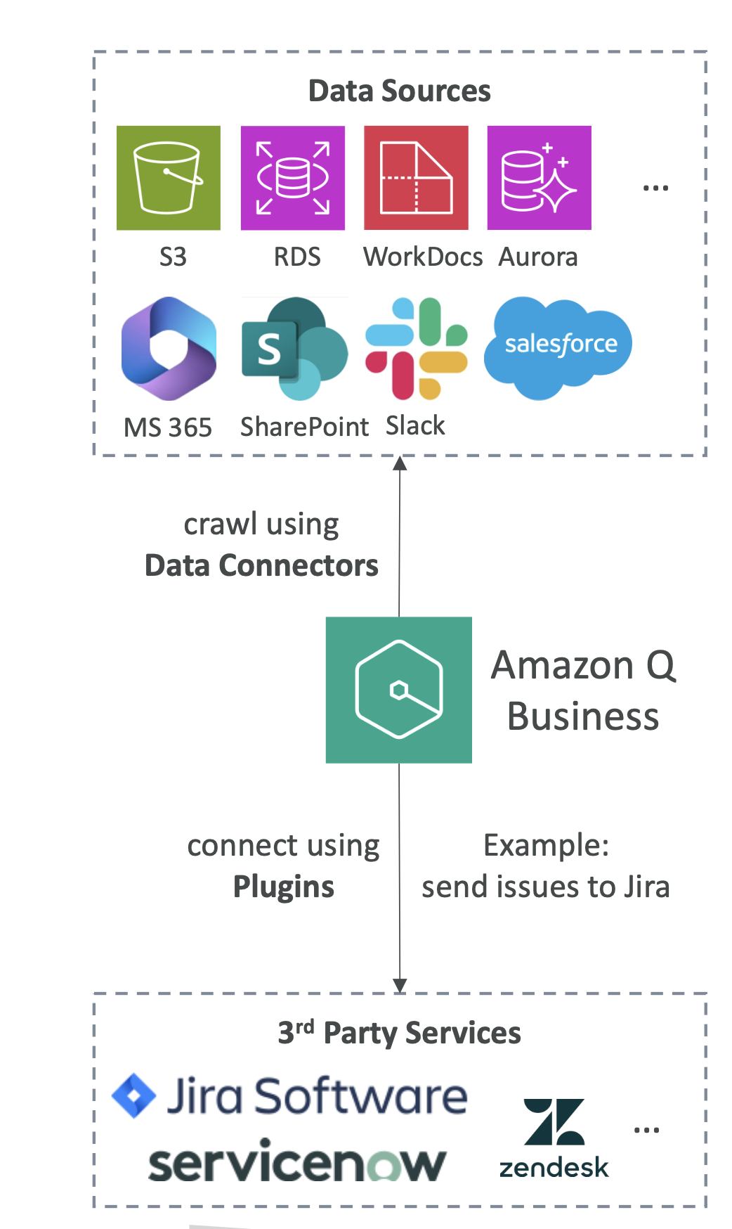 • Example: โ€œCreate a new Jira issueโ€ โ†’ Q Business calls Jira API and creates the ticket.
