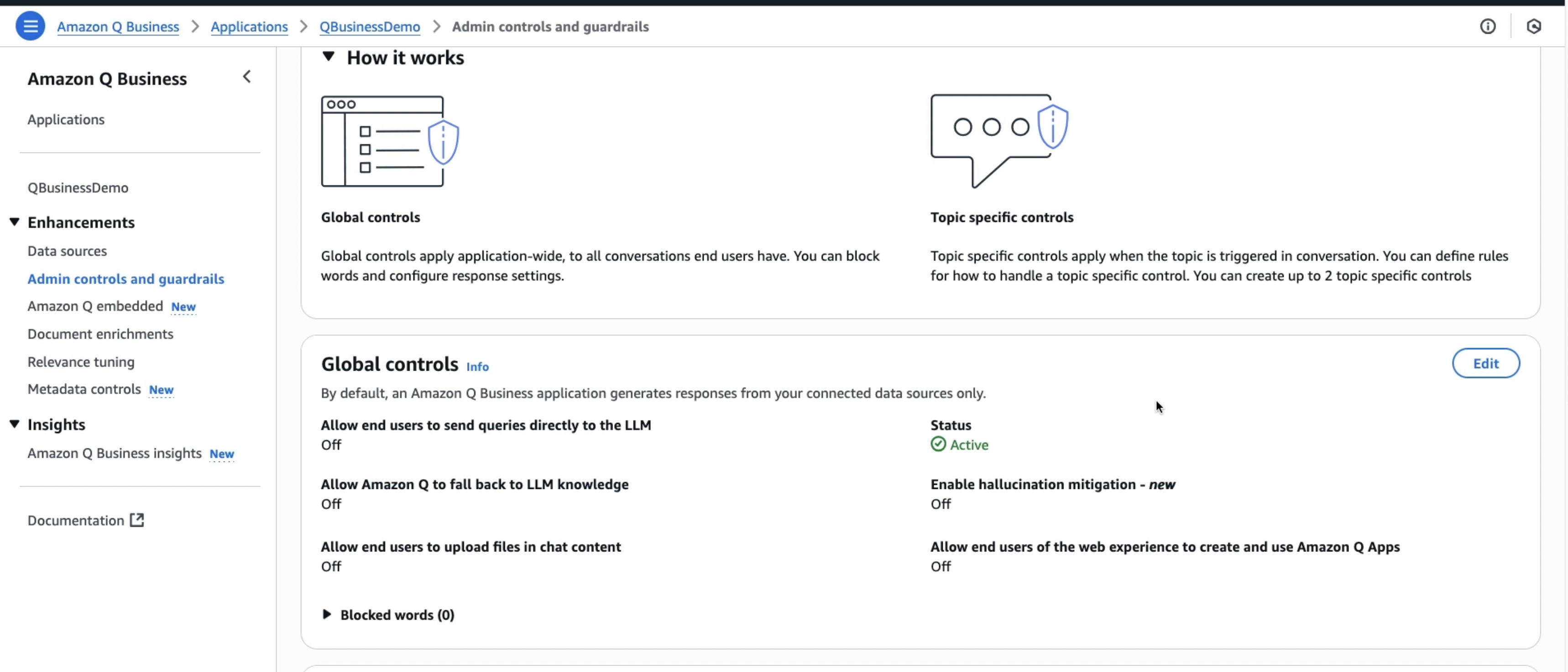 Admin Controls (Guardrails) Block topics, restrict to internal docs Same as Guardrails, Global/Topic scope