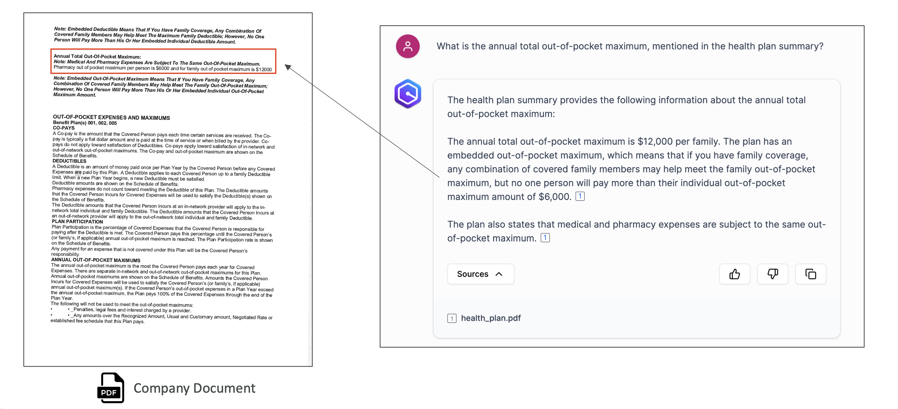 • โ€œWhat is the out-of-pocket maximum in our health plan?โ€ โ†’ Retrieved from PDF.