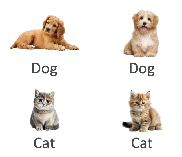 • 예: 고양이, 강아지 이미지와 각각의 라벨이 함께 있음