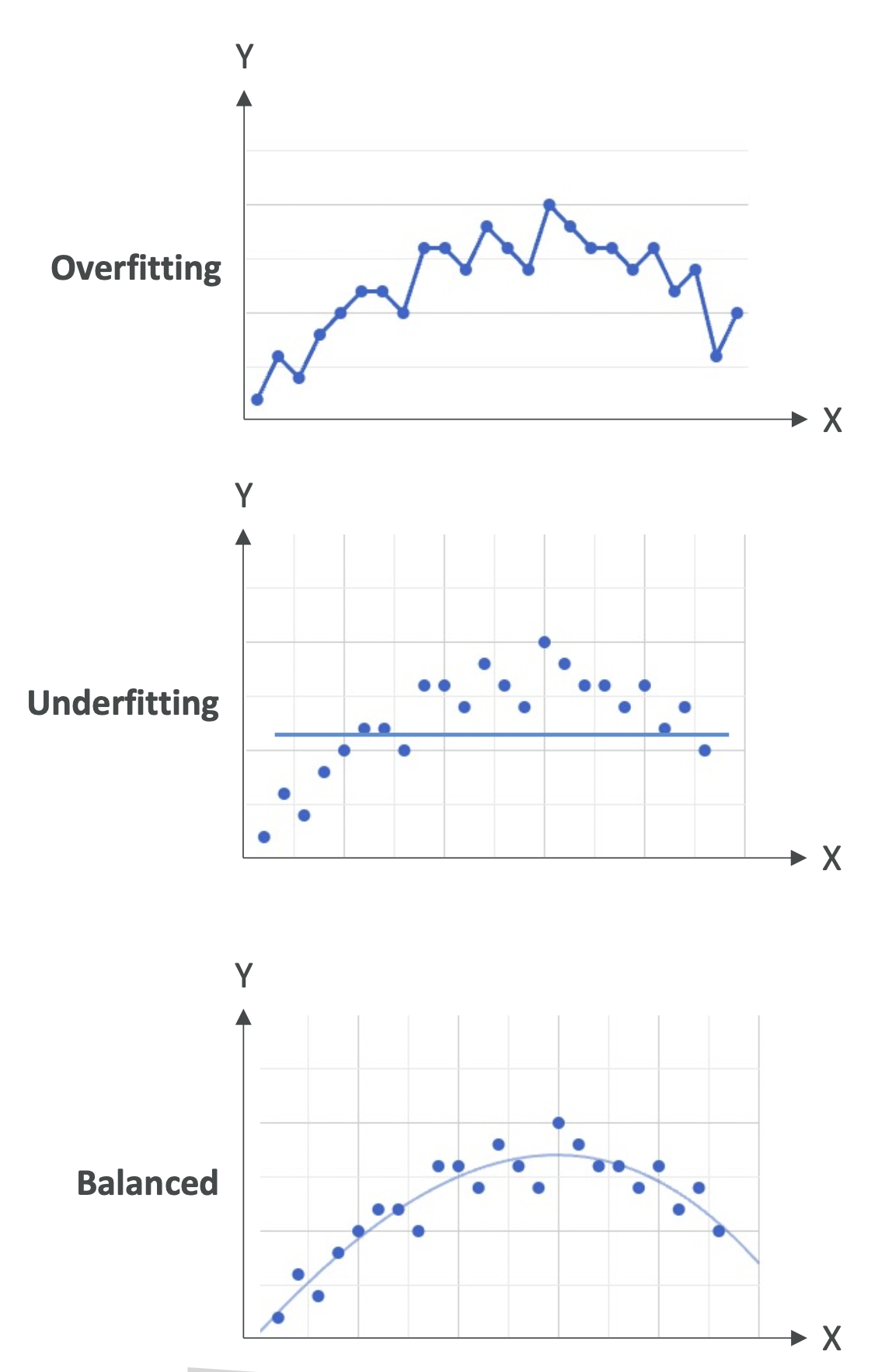• 📌 예시: 복잡한 곡선 데이터에 단순 직선을 억지로 적용