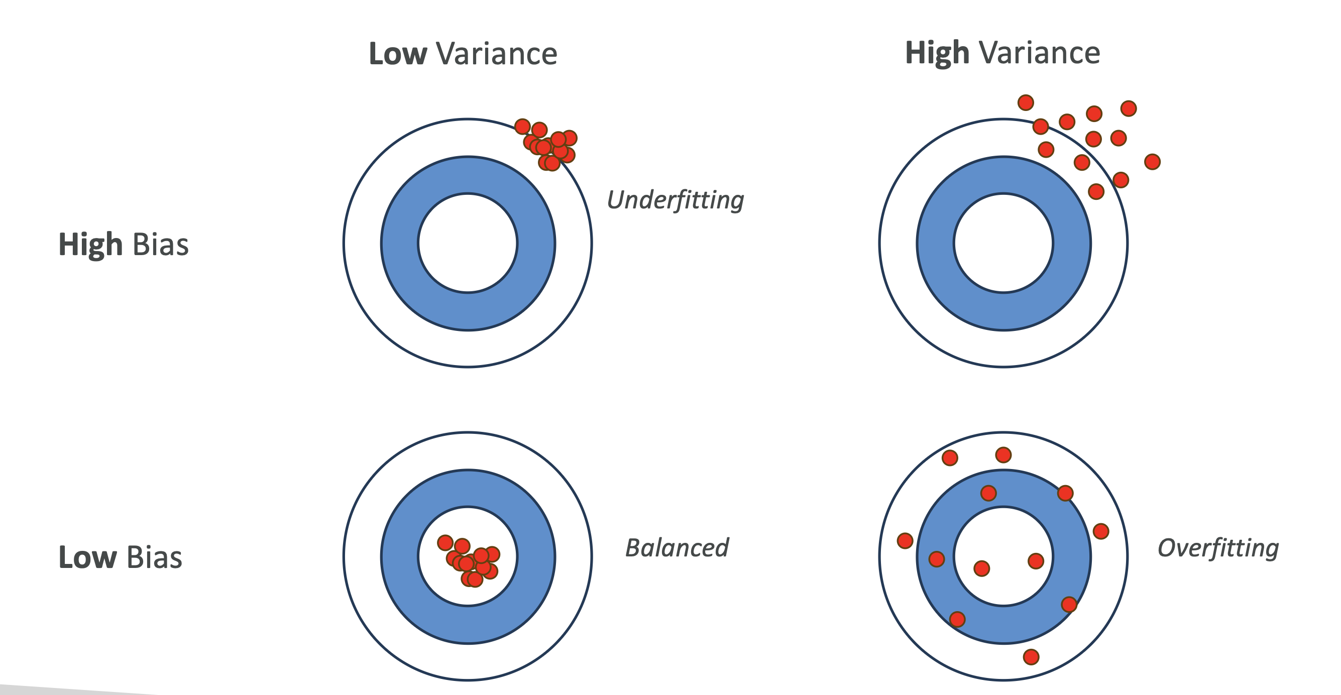 머신러닝에서는 Bias(편향)Variance(분산) 사이에서 균형을 맞추는 것이 중요합니다.